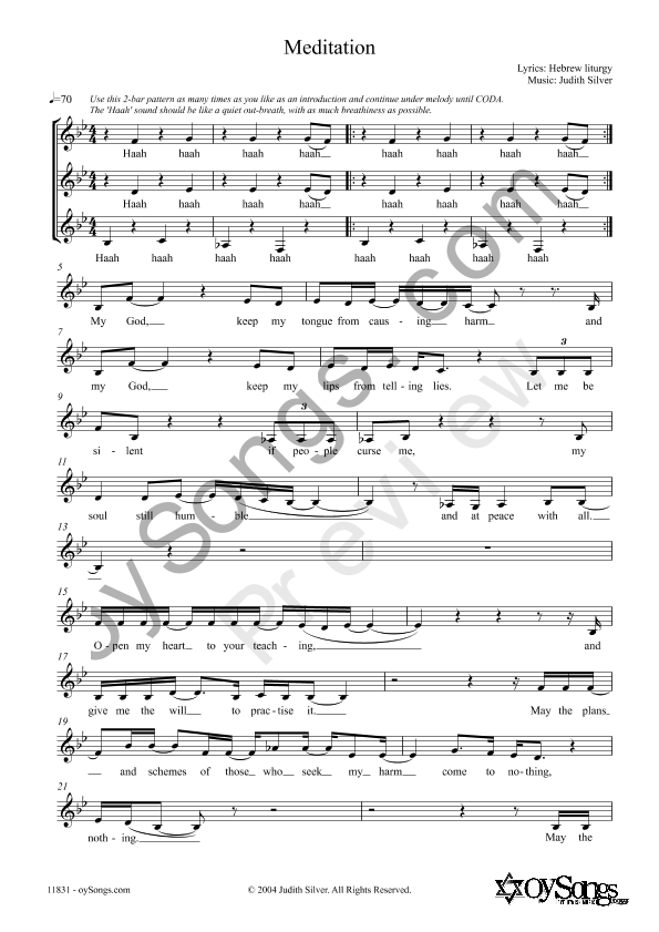 Jewish Meditations Within Jewish history and practice there is deep history of biblical times that meditation was commonplace, through praying and ShalOM-Work: Music is a beautiful part of Jewish tradition. Find different selections of ... Get Document